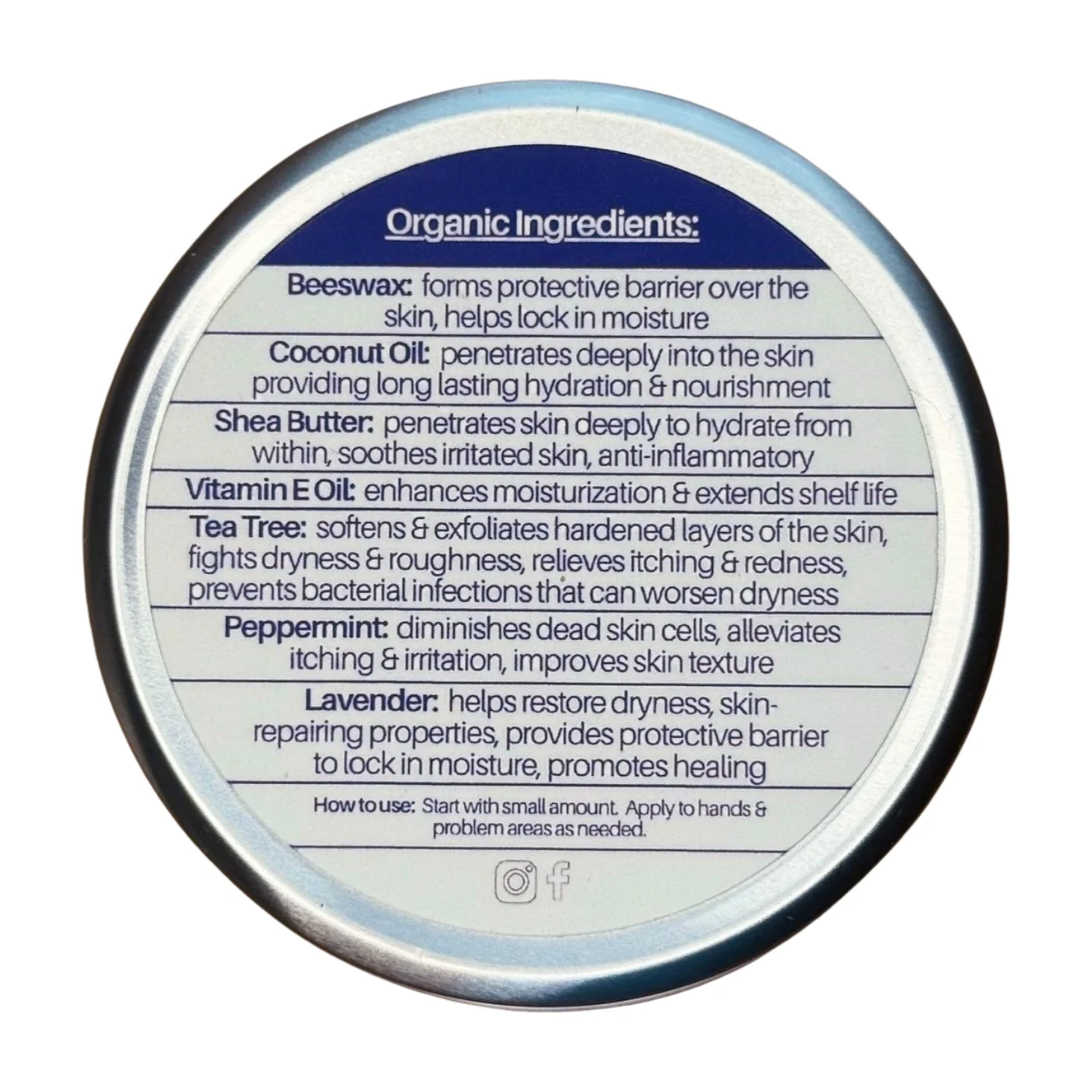 Tea Tree: softens & exfoliates hardened layers of the skin, fights dryness & roughness, relieves itching & redness, prevents bacterial infections that can worsen dryness